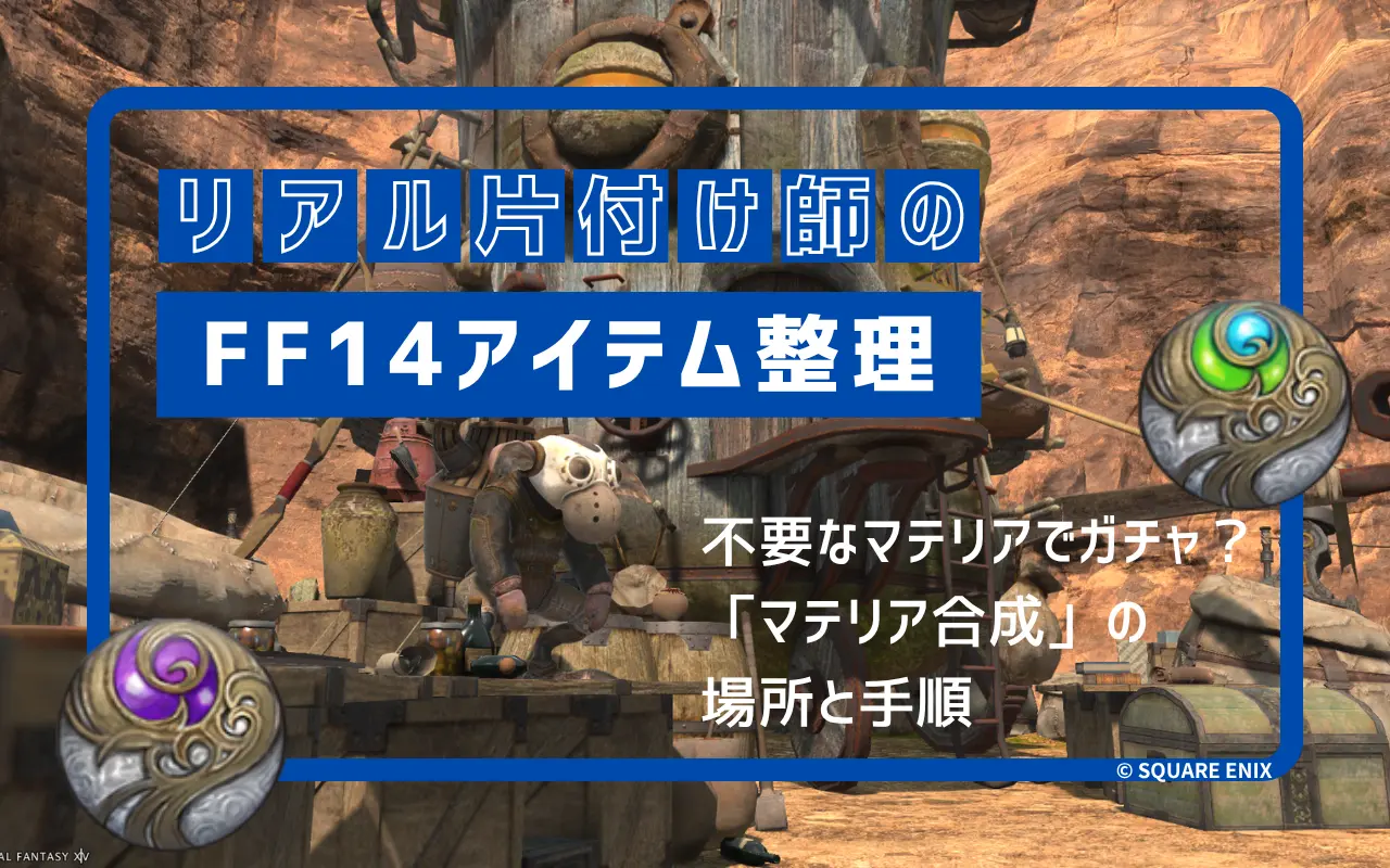 高値で売れないマテリアはショップ売りするのもいいですが、楽しみながらマテリアの数を圧縮できる「マテリア合成」のやり方をご案内します。