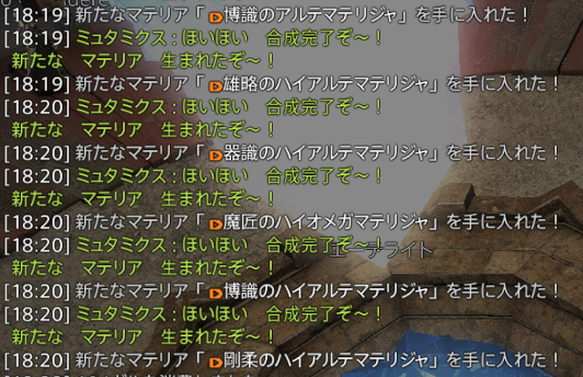 合成結果はこのような感じです。戦闘マテリアから製作・採集マテリアも合成されます。
