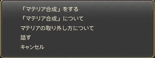 合成したいマテリアが所持品に入っていることを確認してから話しかけます。